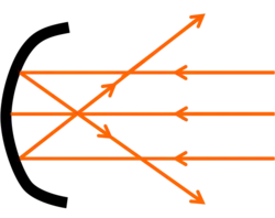 Um espelho côncavo com raios de luz