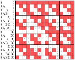 The left Venn diagram below, and the lines (AB    ) in these matrices represent the same operation.