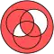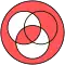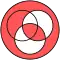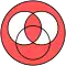 As áreas vermelhas representam verdadeiro (como em para Disjunção_lógica|e).