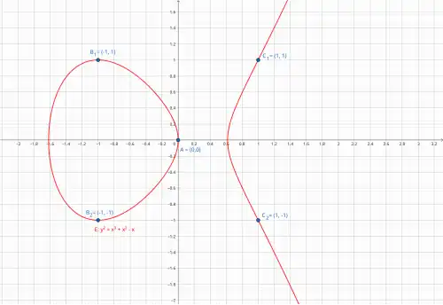 De notar que e analogamente . É igualmente rápido verificar que os pontos racionais , , e também se encontram na curva.