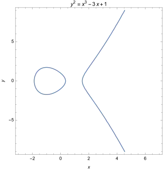 De fato, estes 5 exemplos são – se não considerarmos um "ponto no infinito" que não está incluído no gráfico – os únicos pontos racionais na curva elíptica , pelo que nenhuma combinação de números racionais, além dos mencionados acima, satisfará a equação.[4] Contudo, constatar isso é uma tarefa matematicamente difícil.