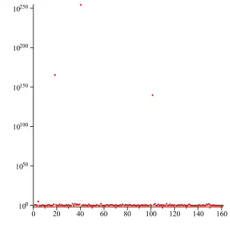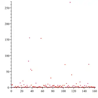 - 6, 1, 1, 21, 1, 9, 1, 1, 2, 3, 1, 7, 2, 1, 83, 1, 156, 4, 58, 8, 54, ...]. (sequência A030167 na OEIS)