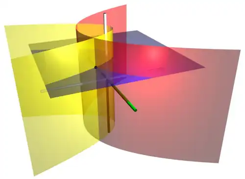 com concavidade voltada para a direção oposta, isto é, na direção . Os focos de todos estes cilindros parabólicos estão localizados ao longo da reta definida por . O raio r tem uma equação simples, a saber,