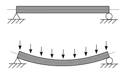 onde EI é a rigidez a flexão, pois E é o módulo da elasticidade e I é o momento de inércia da seção transversal de uma viga entorno de um eixo. W é a deflexão e q(x) é a distribuição da carga.