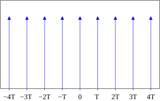 Conhecido por ser um trem de impulso uniforme encontrado por meio do delta de Dirac ,também conhecido como função shah, cria uma função de amostragem, usualmente utilizada em processamento de sinais digitais e para análise de sinais de tempo discretos. O pente de Dirac é dado pela soma infinita, cujo limite pode ser entendido pelo sentido de distribuição,