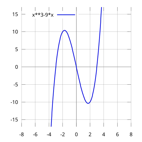 3. em pontos de inflexão (horizontais) da função, que ocorrem onde a concavidade da função muda. Um exemplo típico é a função : no ponto a função tem um ponto de inflexão (horizontal).