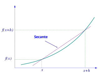 O declive da secante ao gráfico de f, na imagem acima, que passa pelos pontos (x,f(x)) e (x + h,f(x + h)) é dado pelo quociente de Newton: