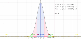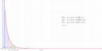 A desigualdade de Chebyschev afirma que, para todas as distribuições para as quais o desvio padrão é definido, o volume de dados dentro de uma quantidade de desvios padrões da média são pelo menos os mesmos que os da tabela a seguir.[39]