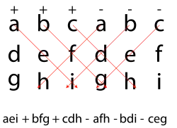 Por exemplo, para o determinante de uma matriz 3 × 3 (n = 3) tem-se: