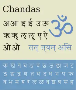 - ↑ Sanskrit Devanagari Fonts[ligação inativa] Harvard University (2010); see Chanda and Uttara ttf Arquivado em 2015-03-10 no Wayback Machine 2010 archive (Accessed: July 8, 2015)