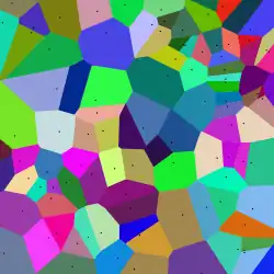 Na matemática, um Diagrama de Voronoi é um tipo especial de decomposição de um dado espaço, por exemplo, um espaço métrico, determinado pela distância para uma determinada família de objetos (subconjuntos) no espaço. Estes objetos são normalmente chamados de sítios ou geradores (apesar de nomes como “sementes” estarem também em uso). Cada sítio está associado a célula de Voronoi correspondente, isto é um conjunto de todos os pontos no dado espaço o qual a distância para o dado sítio não é maior que sua distância para os outros objetos. Foi nomeado de Georgy Voronoi posteriormente, e também chamado de Tesselação de Voronoi, uma Decomposição Voronoi, ou um Mosaico de Dirichlet (em homenagem a Lejeune Dirichlet). Diagramas de Voronoi podem ser encontrados em diversos campos da ciência e tecnologia, até mesmo na arte, tendo inúmeras aplicações práticas e teóricas.[1][2]