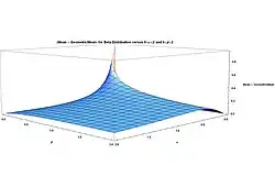 Assim sendo, a média geométrica de uma distribuição beta com parâmetros e é a exponencial da função digama de e como segue: