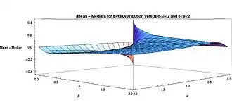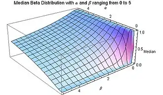 Uma aproximação razoável do valor da mediana da distribuição beta, para ambos e maiores ou iguais a 1, é dado pela fórmula:[11]
