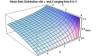 O valor esperado (média) da variável aleatória sob a distribuição beta com parâmetros e é uma função apenas da razão desses parâmetros:[1]