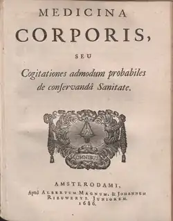 - Medicina mentis et corporis. 1ª parte dedicada a Luís XIV. Amsterdã 1686.