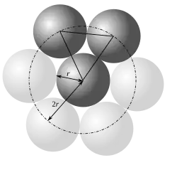 Em um espaço euclidiano de duas dimensões, Carl Friedrich Gauss demonstrou que o arranjo regular de círculos com maior densidade é o empacotamento hexagonal, no qual os centros dos círculos estão arranjados em um retículo hexagonal (dispostos como em uma colmeia de abelhas), e na qual cada círculo está rodeado de outros seis. A densidade deste empacotamento é: