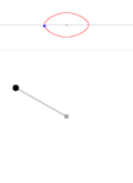 As duas regiões de revolução (em vermelho), onde o pêndulo tem energia suficiente para fazer revoluções completas sem nunca atingir o repouso.
