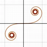 {C(x), S(x)} (Note que a espiral converge para o centro dos buracos na imagem acima conforme x tenta a infinito e a menos infinito.)