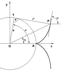 - Em coordenadas polares a evolvente de um círculo tem as equações param[etricas