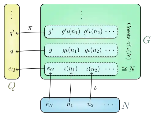 Se G é uma extensão de Q por N, então G é um grupo, é um subgrupo normal de G e o grupo quociente é isomorfo ao grupo Q. Extensões de grupos surgem no contexto do problema de extensão, no qual os grupos Q e N são conhecidos e precisa-se determinar as propriedades de G. Note que a frase "G é uma extensão de N por Q" também é utilizada por alguns autores.[1]