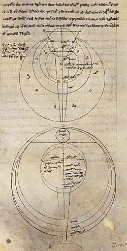 Para explicar o movimento planetário, Eudoxo de Cnido, no quarto século a.C., elaborou as primeiras observações quantitativas para montar um modelo matemático dos movimentos planetários. Eudoxo desenvolveu um sistema de esferas concêntricas, sendo que cada esfera carrega um planeta.[25] Este sistema foi se sofisticando ao longo dos séculos, com a crença dos gregos em um sistema geocêntrico.[25] Todas as anomalias observadas, como a regressão aparente dos planetas e até mesmo a precessão do eixo da Terra, descoberta por Hiparco, foi explicada através do aumento da complexidade do sistema de esferas geocêntricas.[26] Ptolomeu, no século II a.C. havia elaborado um sistema esférico dos planetas com mais de 80 esferas e epiciclos e seu trabalho, resumido em uma coleção de 13 livros que ficaram conhecidos como Almagesto, foi utilizado amplamente pelos árabes e europeus até a Alta Idade Média.[26]