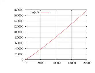 Uma boa aproximação para ln(n!) é fazer o logaritmo da fórmula de Stirling.