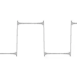 ou seja, cerca de 9% do salto. Mais especificamente, em qualquer salto de uma função por partes continuamente diferenciável com um salto de altura α, a n-ésima série de Fourier parcial vai ultrapassar esta altura por aproximadamente: