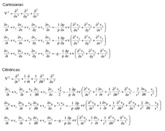 As equações de Navier-Stokes são utilizada na descrição do movimento de fluidos viscosos. Todavia, só permitem descrever escoamentos laminares, ou que sejam ao menos previsíveis de alguma forma. Elas permitem visualizar tanto em coordenadas cartesianas como em cilíndricas.[1]