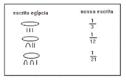 Eles escreviam essas frações com uma espécie de sinal oval escrito em cima do denominador. Mas os cálculos eram complicados, pois no sistema de numeração que usavam no antigo Egito os símbolos se repetiam muitas vezes.[1]