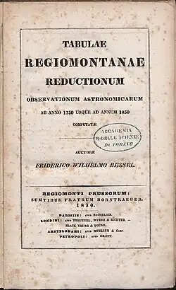 - Tabulae Regiomontanae reductionum observationum astronomicarum ab anno 1750 usque ad annum 1850 computatae. Sankt-Peterburg: Brüder Borntraeger. 1830