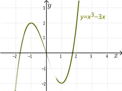 No exemplo anterior, uma escolha, a raiz quadrada positiva, é mais natural do que a outra. Este não é o caso em geral. Por exemplo, considere a função implícita que mapeia y em uma raiz x de (veja a figura à direita). Para y = 0 pode-se escolher para x. Pelo teorema da função implícita, cada escolha define uma função; para a primeira, o domínio (máximo) é o intervalo [−2, 2] e a imagem é [−1, 1]; para a segunda, o domínio é [−2, ∞) e a imagem é [1, ∞); para a última, o domínio é (−∞, 2] e a imagem é (−∞, −1]. Como os três gráficos juntos formam uma curva suave, e não há razão para preferir uma escolha, essas três funções são frequentemente consideradas como uma única função multivalorada de y que tem três valores para −2 < y < 2, e apenas um valor para y ≤ −2 e y ≥ −2.