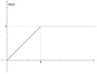 Também chamada de aproximação linear da função de Heaviside, é utilizada quando se torna necessário definir a transição 0 e ε. Para isso, supomos que tal ocorre de forma linear. Definimos a função:[4]