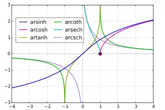 Gráficos da função hiperbólica inversa quanto às funções trigonométricas inversas .