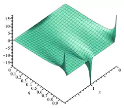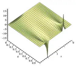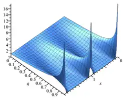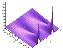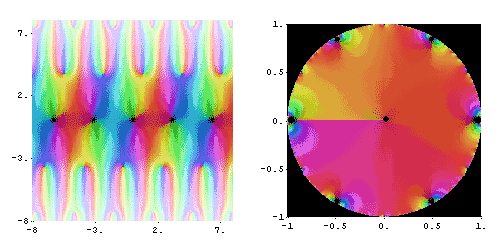 Função teta θ1 com nomos q = eiπτ diferentes. O ponto preto na imagem à direita indica como q muda com τFunção teta θ1 com nomos q = eiπτ diferentes. O ponto preto na imagem à direita indica como q muda com τ