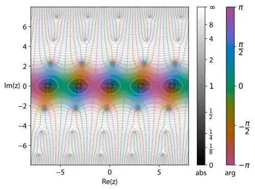 ↑Veja p. ex. https://dlmf.nist.gov/20.1. Note que isto, em geral, não é equivalente à interpretação usual quando está fora da faixa . Aqui, denota o ramo principal do logaritmo complexo.