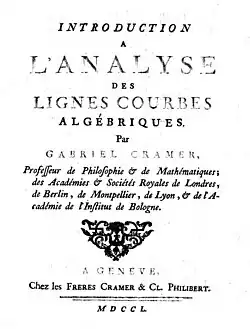 - Introduction à l′analyse des lignes courbes algébriques, Genebra 1750.