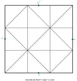 Uma possível triangulação da garrafa de Klein é dada pela figura abaixo, na qual temos uma triangulação da representação poligonal desta figura topológica.