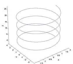 Em matemática, a hélice é descrita como uma curva no espaço tridimensional que combina um movimento de rotação em torno de um ponto com um movimento de translação deste ponto. As três equações a seguir definem uma hélice em coordenadas retangulares: