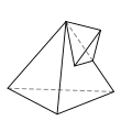 ![]() ![]() ![]() ![]() ![]() ![]() Seis heptaedros topologicamente distintos (excluindo imagens espelhadas) podem ser formados ao se combinar dois tetraedros em várias configurações. A terceira, a quarta e a quinta dessas têm uma face com arestas adjacentes colineares, e a sexta tem uma face que não é simplesmente conectada. | |