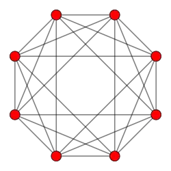 Todos os vértices são conectados por arestas, exceto os pares opostos.
