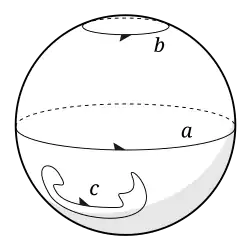 Na esfera , o ciclo b no diagrama pode ser encolhido para o pólo e até mesmo o círculo equatorial grande círculo a pode ser encolhido da mesma maneira. O teorema da curva de Jordan mostra que qualquer círculo arbitrário tal como c pode ser encolhido de forma semelhante até um ponto. Todos os círculos na esfera podem portanto ser continuamente transformados um no outro e pertencerem à mesma classe de homologia. Diz-se que eles são homólogos a zero. Cortar uma variedade ao longo de um círculo homólogo a zero separa a variedade em duas ou mais componentes. Por exemplo, cortar a esfera ao longo de a produz dois hemisférios.