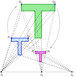 Consequências: um triângulo é projetado sobre um triângulo semelhante. A imagem homotética de um círculo é outro círculo. A imagem de uma elipse é outra elipse semelhante, ou seja, a razão entre os dois eixos permanece inalterada.
