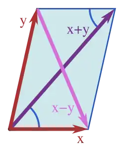 Essas formas são todas equivalentes por conta da lei do paralelogramo:[prova 1]