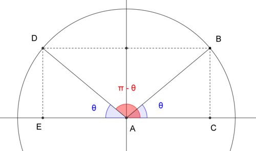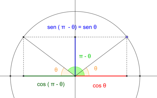 - , ou seja,os senos de dois ângulos replementares são iguais, porém com sinais opostos;