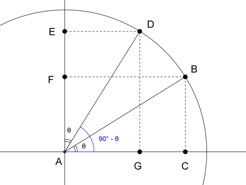 - , ou seja, os cossenos de dois ângulos replementares são iguais.