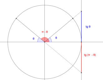 - , ou seja, as tangentes de dois ângulos replementares são iguais, porém com sinais opostos.