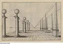 Na arte, a perspectiva utiliza o conceito de um ponto de fuga imaginário, ou pontos no infinito, localizados a uma distância infinita do observador. Isso permite aos artistas criar pinturas que retratam de forma realística o espaço, distâncias e os objetos. A principal diferença entre a arte da Idade Média e a do Renascimento foi a introdução da terceira dimensão. A pintura renascentista é caraterizada pelo realismo, introduzido pela perspectiva com o auxílio da matemática. Isso implicava um processo de racionalização que agradava ao pintor, pois o artista renascentista era também um cientista. [18]