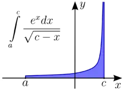 {\displaystyle \int _{a}^{b}f(x)\,dx=\lim _{c\to b^{-}}\int _{a}^{c}f(x)\,dx}