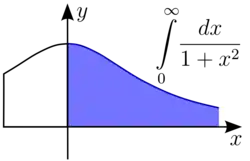 {\displaystyle \int _{0}^{\infty }{\frac {dx}{(x+1){\sqrt {x}}}}=\pi }