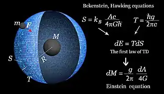 A imagem demonstra a maneira de pensar da gravidade entrópica, princípio holográfico, distribuição de entropia e derivação das equações de campo de Einstein a partir dessas considerações